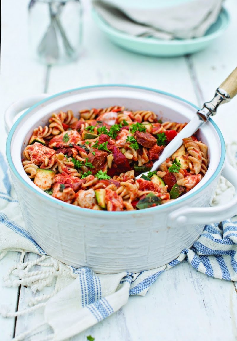 If you want an easy yet filling meal to make for all the family, then this is a great option chicken and chorizo pasta. Choose chunky pasta shapes like penne or farfalle to trap the sauce, and serve with lashings of grated parmesan cheese.